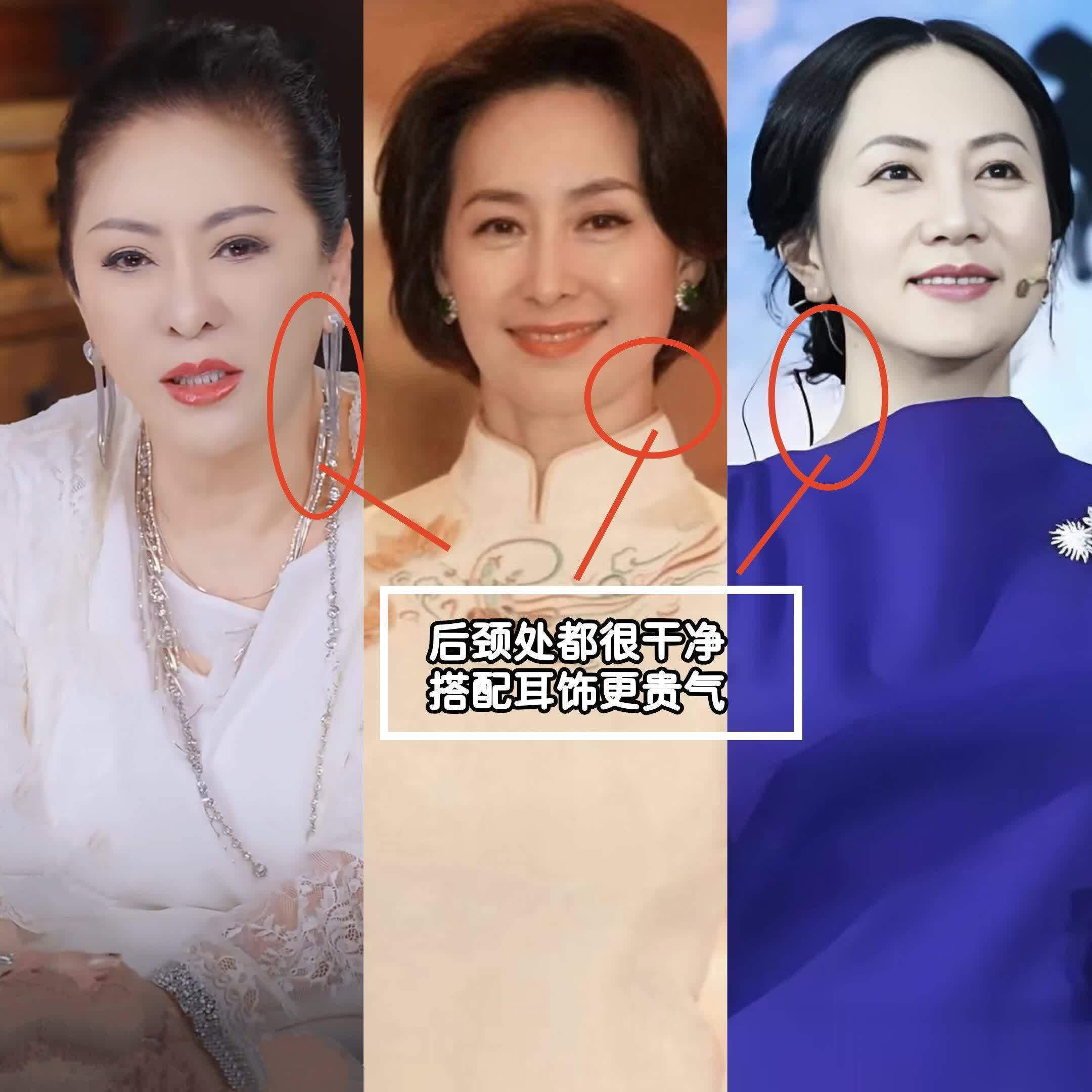 大家快来看,没有哪个真正的贵妇发型会是乱糟糟的,不管是何超琼、孟晚舟还是向太,她们都会把后颈的碎发收得干干净净!
