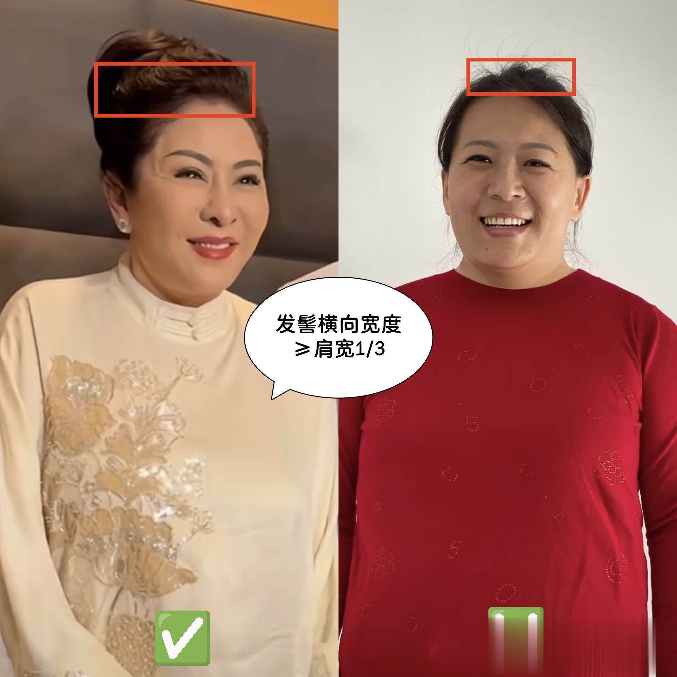 很多大龄女性见到向太,一定很有共鸣——因为她这种肩宽背厚的微胖身材好多大龄女性都有!但是普通人把头发扎起后,因为头发的量感轻了,就显得身材更壮实了。