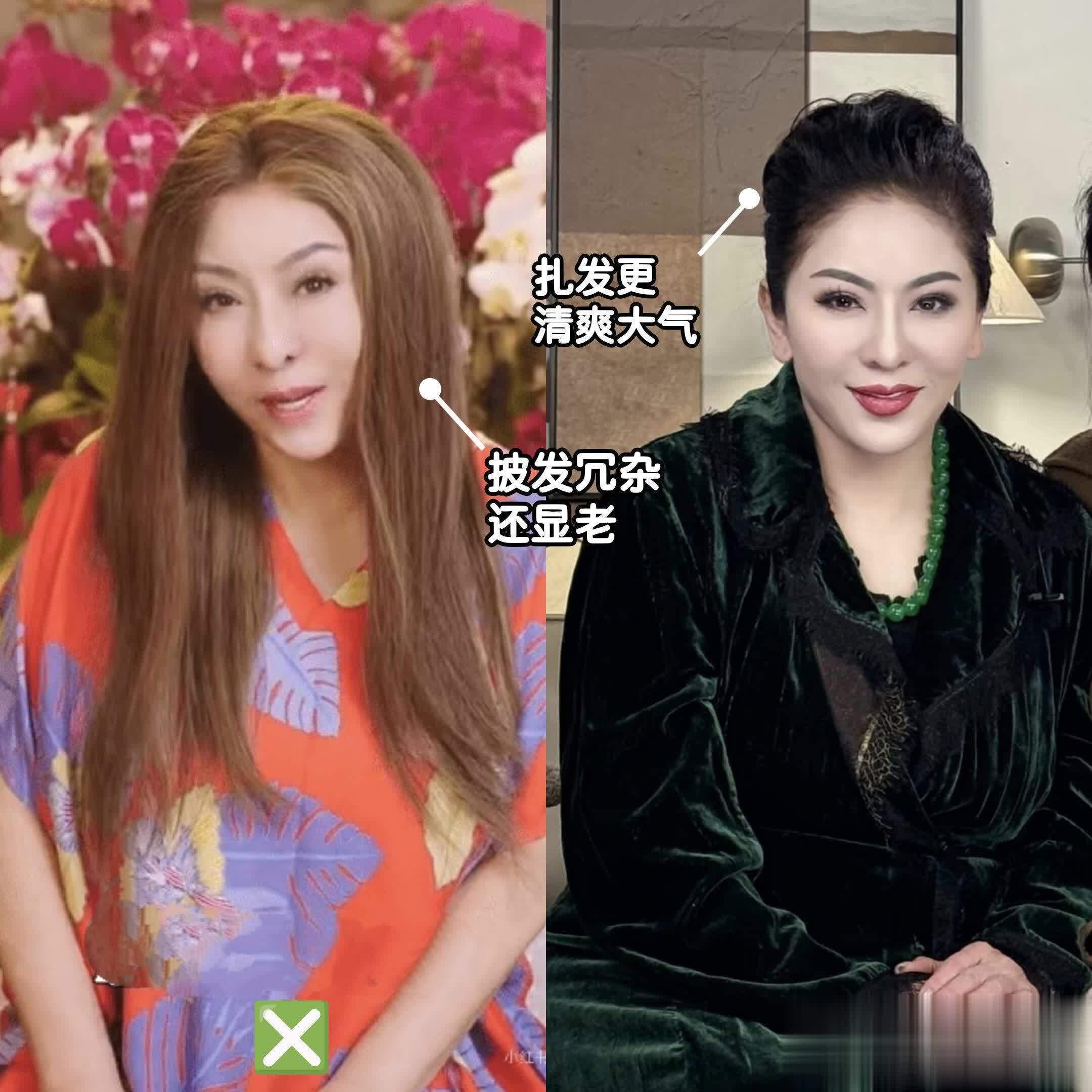 主要是女人老了不仅脸上肌肉线条会下垂,发质也会变得干枯,你瞧,向太这种天天做高级护理的豪门贵妇披发时都是肉眼可见的毛糙,更何况咱们普通人?扎发就可以把肌肉线条视觉上往上提,还能掩盖发质问题,把我们变得有精神还好看。